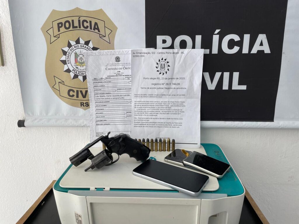 17 Dpri/Dp Barra do Ribeiro: Na manhã desta terça-feira, 09/09/25, equipe de policiais da Dp Barra do Ribeiro, com apoio da Dp Eldorado do Sul, prendeu em flagrante CLD, 37 anos, pelo crime de Posse ilegal de arma de fogo com numeração suprimida. A ação ocorreu em cumprimento a mandado de busca e apreensão cumprido em apoio à Dp Camaquã, que investigava o flagrado pela prática de delitos de Estelionato naquela comarca. Além da arma de fogo e munições foram apreendidos documentos falsificados, aparelhos celulares e outros petrechos para falsificação de documentos .