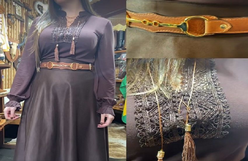 Entre as novidades, destaca-se a combinação de bata marrom com delicados detalhes em renda, acompanhada de uma saia em suede e cinto de couro com bridão, peça que transmite autenticidade e sofisticação. O visual, perfeito para o Desfile de 20 de Setembro, valoriza cada detalhe da cultura do Rio Grande do Sul e reforça o orgulho das tradições farroupilhas.